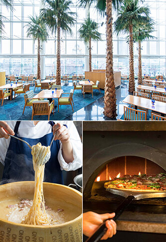 Café Tosca拥有明亮宽敞的氛围,阳光透过中庭窗户洒入室内。我们将在新年假期期间,在这个可以俯瞰横滨港港未来的开放空间举办自助午餐。