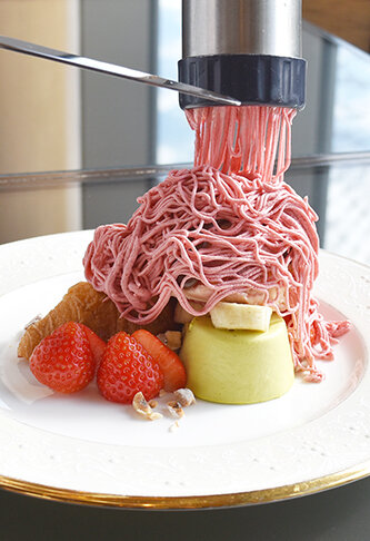 横浜ベイホテル東急 ホーム > レストラン > レストランフェア > 「ソマーハウス」"しぼりたてモンブラン(いちご)" デザートプレート