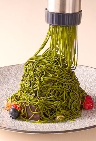 广受欢迎的“鲜挤蒙布朗”,即在顾客面前挤上奶油,现在限时推出日式风味版本,采用优雅芬芳的抹茶奶油!