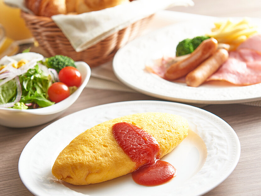 用新鲜果汁唤醒身体后,品尝主厨制作的珍藏煎蛋卷。将松软粘稠的煎蛋卷一个个用心烤制而成。香味浓郁味道浓厚的MAISON KAYSER面包使用天然酵母,在酒店内的工作室烤制而成。