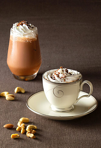 是以可可为底料,散发着坚果风味的微苦的一杯。